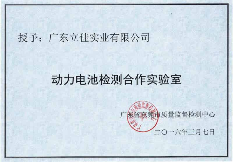 東莞質(zhì)檢授予立佳“動力電池檢測合作實(shí)驗(yàn)室”“可靠性檢測檢測合作實(shí)驗(yàn)室”榮譽(yù)