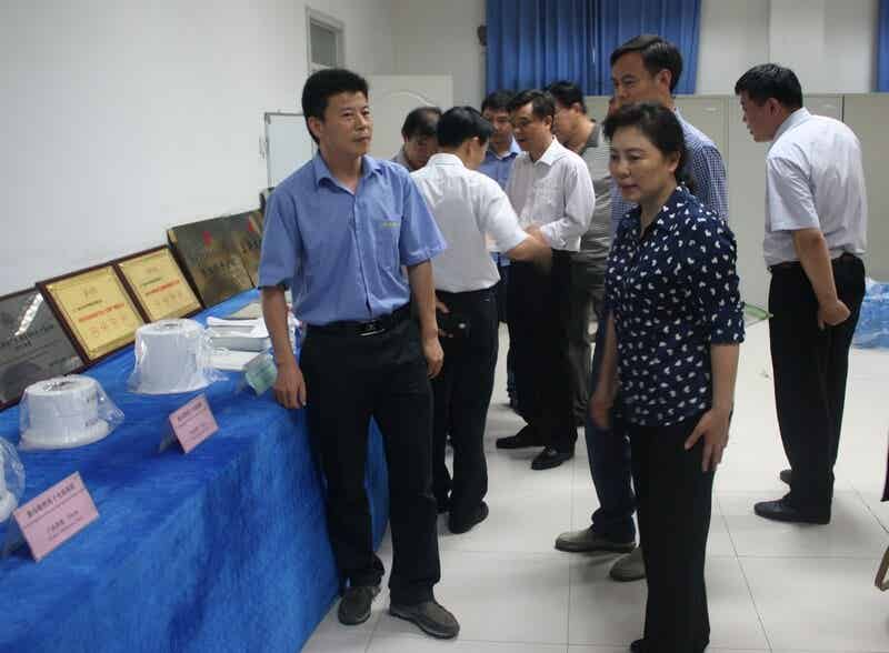 朱總陪同李瑞霞副市長一行參觀了PP隔膜工廠生產線,向大家介紹了隔膜產品規格、性能、應用領域以及公司歷年來取得的榮譽與獎勵,并匯報了生產銷售、技術升級等情況。