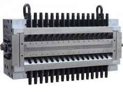 模具流道形式:模頭采用雙流道結構,上下模唇可調節易拆卸,彈性微調設計可使制品壁厚誤差在±3%以內,全封閉內置式電熱管分區控制,加熱迅速,溫差小,模內吹氣機構獨立分區控制流量,配氣均勻使制品更穩定,模腔及芯棒采用精度高達0.015-0.03UM的精拋光工藝,確保物料流暢。芯棒內部裝有氣體分流桿,能獨立均勻調節各區氣體流量。模頭與擠出機,配套定型模等輔機用于生產PC、PE、PC+UV、PP單層、多層格子板、米字型、X型、六角形、蜂窩狀等各形狀中空板材。配套的兩級定型板采用優質鋼材及特殊表面處理,耐磨不變形,特殊的溫控水道和真空定型設計,滿足制品溫度要求和成型穩定。