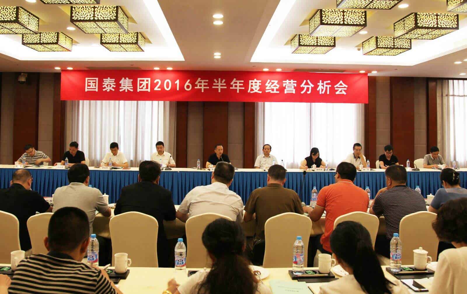 7月30日上午,國泰集團在國貿酒店聚賢廳召開2016年半年度經營分析會。集團領導,集團顧問,各公司董事長、總經理、常務副總經理以及集團公司各部室負責人參加會議。集團委派財務經理和集團職能部門副職列席會議。會議由陳曉東主持。
