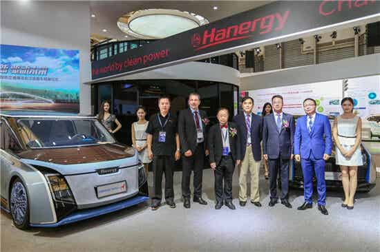 聯合國歐洲經濟委員會秘書處可持續發展部部長Mr.Walter Nissler,中國工程院院士、APEC-IOV專家委員會主席陳清泉院士、中國能源網首席研究員韓曉平、上海市國際展覽有限公司董事長兼總裁顧春霆、漢能控股高級副總裁張彬、漢能控股副總裁高衛民博士為漢能全太陽能動力汽車揭幕