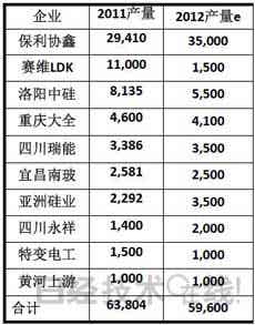 2012年多晶硅價(jià)格持續(xù)低位運(yùn)行,最新報(bào)價(jià)已低于18美元/千克,粒狀硅報(bào)價(jià)低于1418美元/千克,明顯低于生產(chǎn)成本。中國(guó)多晶硅產(chǎn)業(yè)進(jìn)一步惡化,產(chǎn)量出現(xiàn)負(fù)增長(zhǎng)(見(jiàn)圖1),停產(chǎn)企業(yè)數(shù)量近90%,目前僅有江蘇中能、亞洲硅業(yè)和黃河上游等幾家企業(yè)在繼續(xù)生產(chǎn),但產(chǎn)能利用率僅約50%。2013年多數(shù)停產(chǎn)的多晶硅企業(yè)將會(huì)被淘汰,行業(yè)回暖要到2014年。