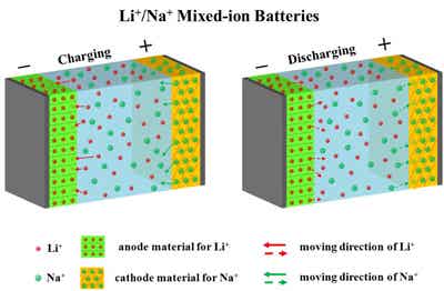 圖2:混合離子電池分離Li+/Na+的原理示意圖