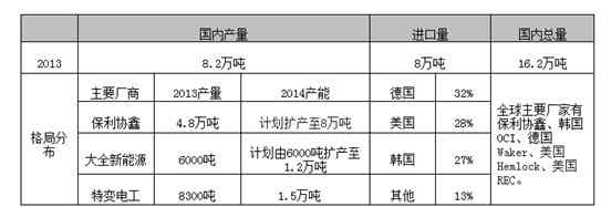 國(guó)內(nèi)多晶硅市場(chǎng)具體格局如下: