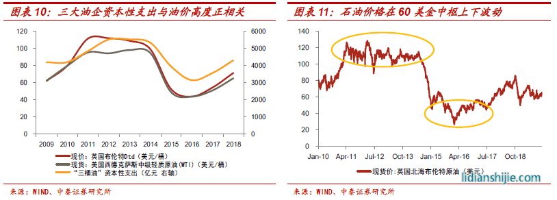 小結(jié):石油煉化和制造業(yè)的景氣程度決定了不銹鋼棒線材的需求強(qiáng)弱,雖然2019年制造業(yè)投資的持續(xù)低迷導(dǎo)致行業(yè)需求有所回落,但未來(lái)持續(xù)走低概率較低,制造業(yè)的企穩(wěn)回升有望在2020年迎來(lái)轉(zhuǎn)機(jī),前期影響行業(yè)需求走弱的負(fù)面因素或有所緩解。而另一方面,由于油價(jià)仍處“舒適區(qū)間”,導(dǎo)致短期三大油企資本開(kāi)支維持高位,不銹鋼棒線材位于油氣鏈條后周期環(huán)節(jié),石油煉化投資高景氣度所帶來(lái)的訂單釋放在未來(lái)兩年確定性較高。