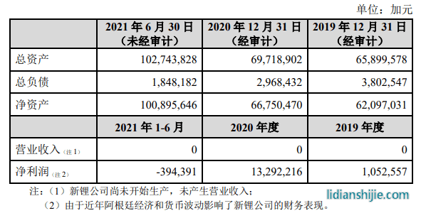 Neo Lithium的財務數據顯示,由于其此前尚未開始生產,其近兩年多均為實現營收,而2019年、2020年及今年上半年實現凈利潤分別為105.26萬加元、1329.22萬加元、-39.44萬加元。