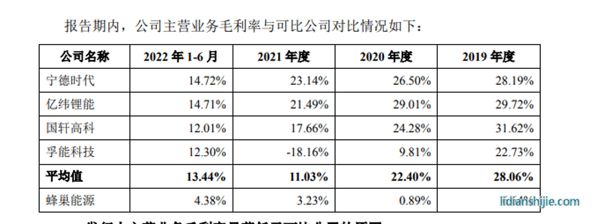 蜂巢能源虧損如此嚴重,主要原因在于其毛利率也偏低。在《關于蜂巢能源科技股份有限公司首次公開發行股票并在科創板上市申請文件的審核問詢函》回復函中顯示,2020年到2022版半年期間,蜂巢能源的毛利率分別為0.89%、3.23%和4.38%。