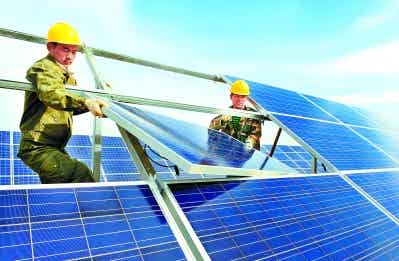核心提示:高臺縣高崖子灘光伏產(chǎn)業(yè)園工人在安裝光伏發(fā)電板。