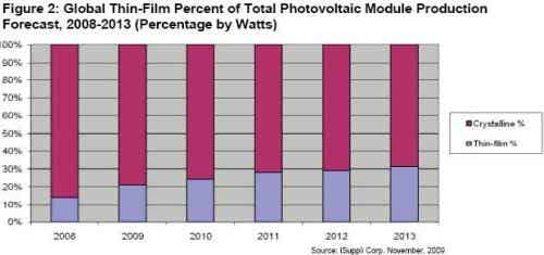 盡管去年多晶硅的合同價格下挫逾50%,但薄膜太陽能模塊市場前景依然樂觀。iSuppli公司預測,到2013年,薄膜光伏太陽能模塊將占到整體模塊市場的30%以上,2008年該比例為14%。