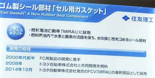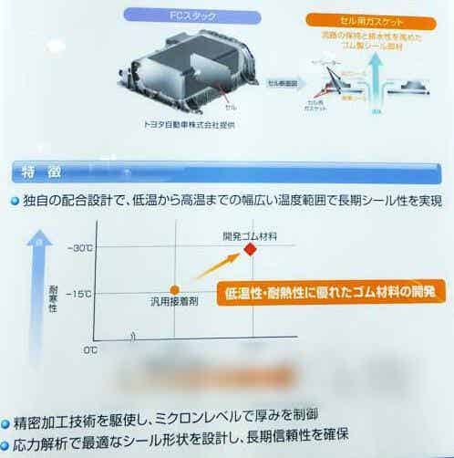 住友理工首次展出了向豐田燃料電池車的電池單元用密封墊片