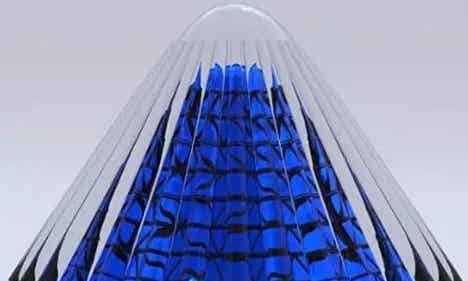 一個(gè)一米直徑大的錐形支架上,裝著幾百個(gè)三角形的光伏電池,包裹在一個(gè)“密封外透鏡聚光器”里面。光伏旋轉(zhuǎn)的動(dòng)力來(lái)自少量的太陽(yáng)能電力和磁懸浮系統(tǒng),減少了噪音,也幾乎無(wú)需保養(yǎng)。
