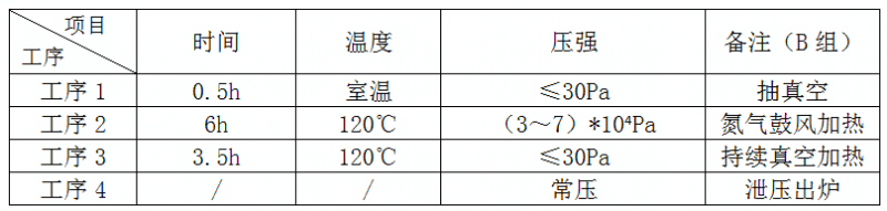 選用本公司生產的三元體系B 型電池30 支進行接觸式干燥,干燥溫度100℃,時間為5~10h。干燥工藝如下: